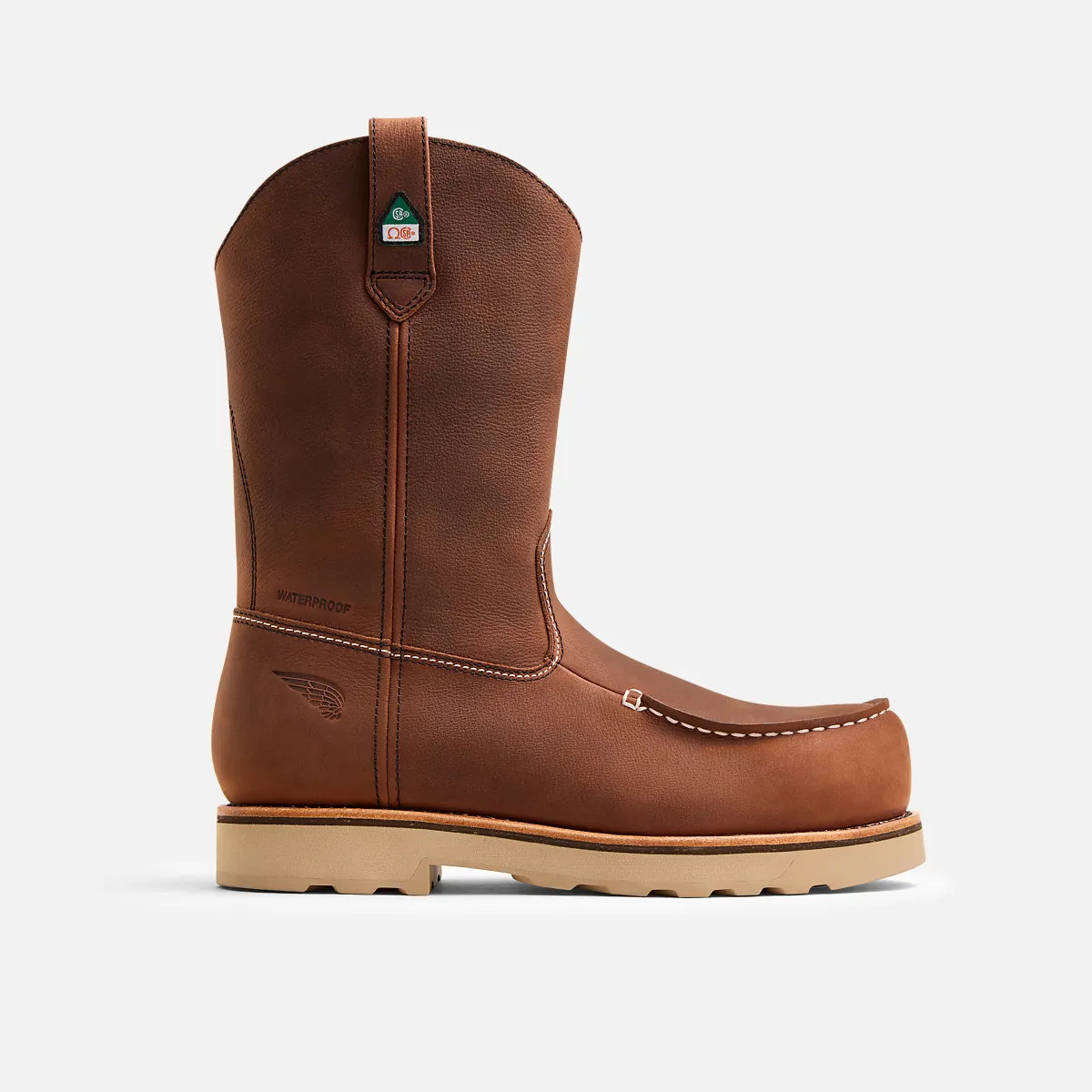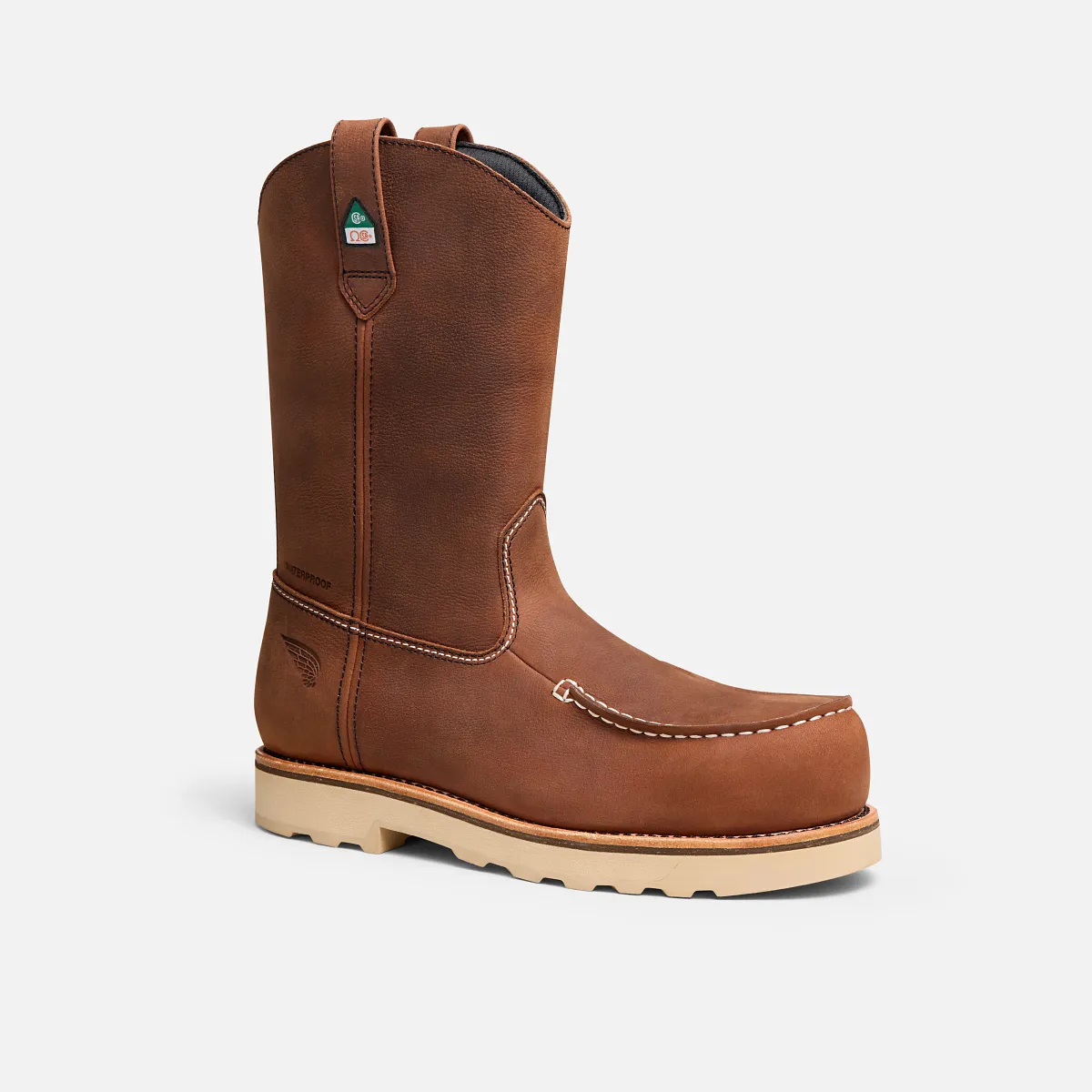 This lightweight pull-on version of the classic work boot with iconic moc toe and LiteTred outsole provides superior stability and all-day comfort for treading confidently on uneven terrain and a variety of other heavy duty work environments. You'll stay comfortable and safeguarded with the waterproof upper and built-in electrical hazard, puncture-resistant and non-metallic safety toe protection, while best-in-class slip resistance helps you feel sure on your feet.