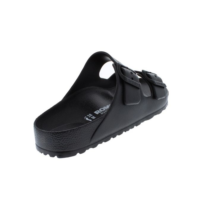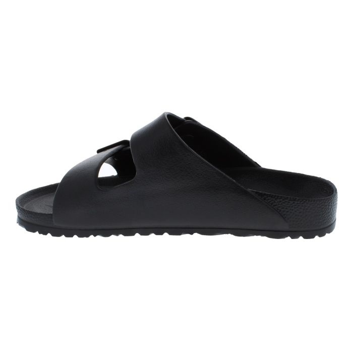 - Contoured footbed with a toe bar & deep heel cup